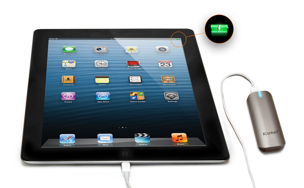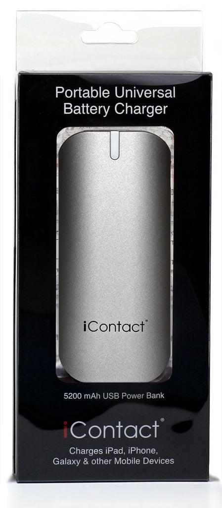 The perfect solution for when you're on the go! The iContact Power Bank packs a whopping 5200 mAh of power into a small, stylish space. Charge the Power Bank for just a few hours and you've got the peace of mind knowing your digital devices will not run out of juice when you need them most. Simply attach your device's compatible USB charging cable to the Power Bank and watch your mobile phone or other digital device come back to life. The Power Bank also includes a bright LED flashlight for emergencies.