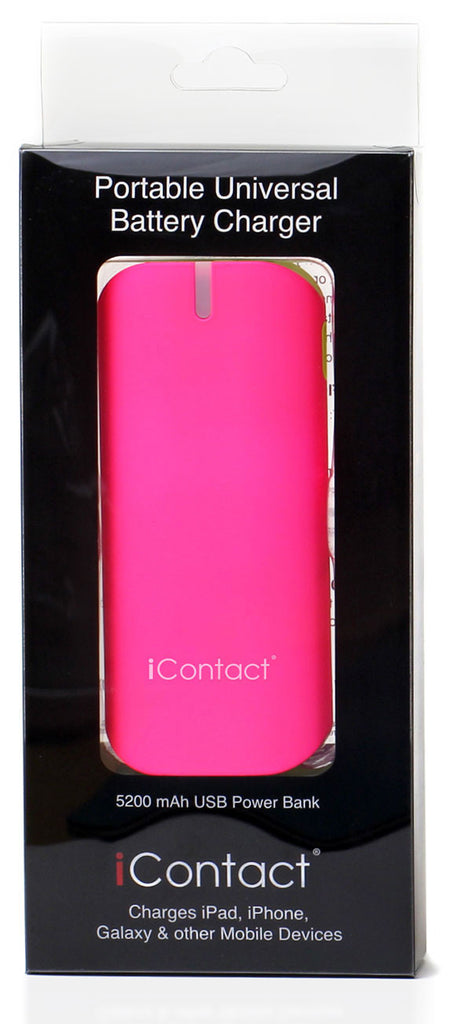 The perfect solution for when you're on the go! The iContact Power Bank packs a whopping 5200 mAh of power into a small, stylish space. Charge the Power Bank for just a few hours and you've got the peace of mind knowing your digital devices will not run out of juice when you need them most. Simply attach your device's compatible USB charging cable to the Power Bank and watch your mobile phone or other digital device come back to life. The Power Bank also includes a bright LED flashlight for emergencies.